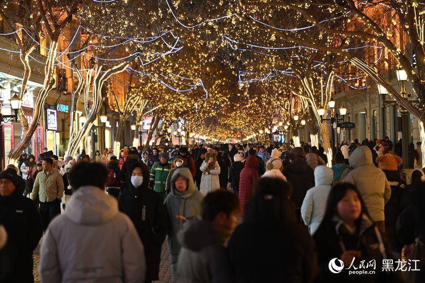 元旦假期哈尔滨中央大街游人如织。人民网记者 徐成龙摄